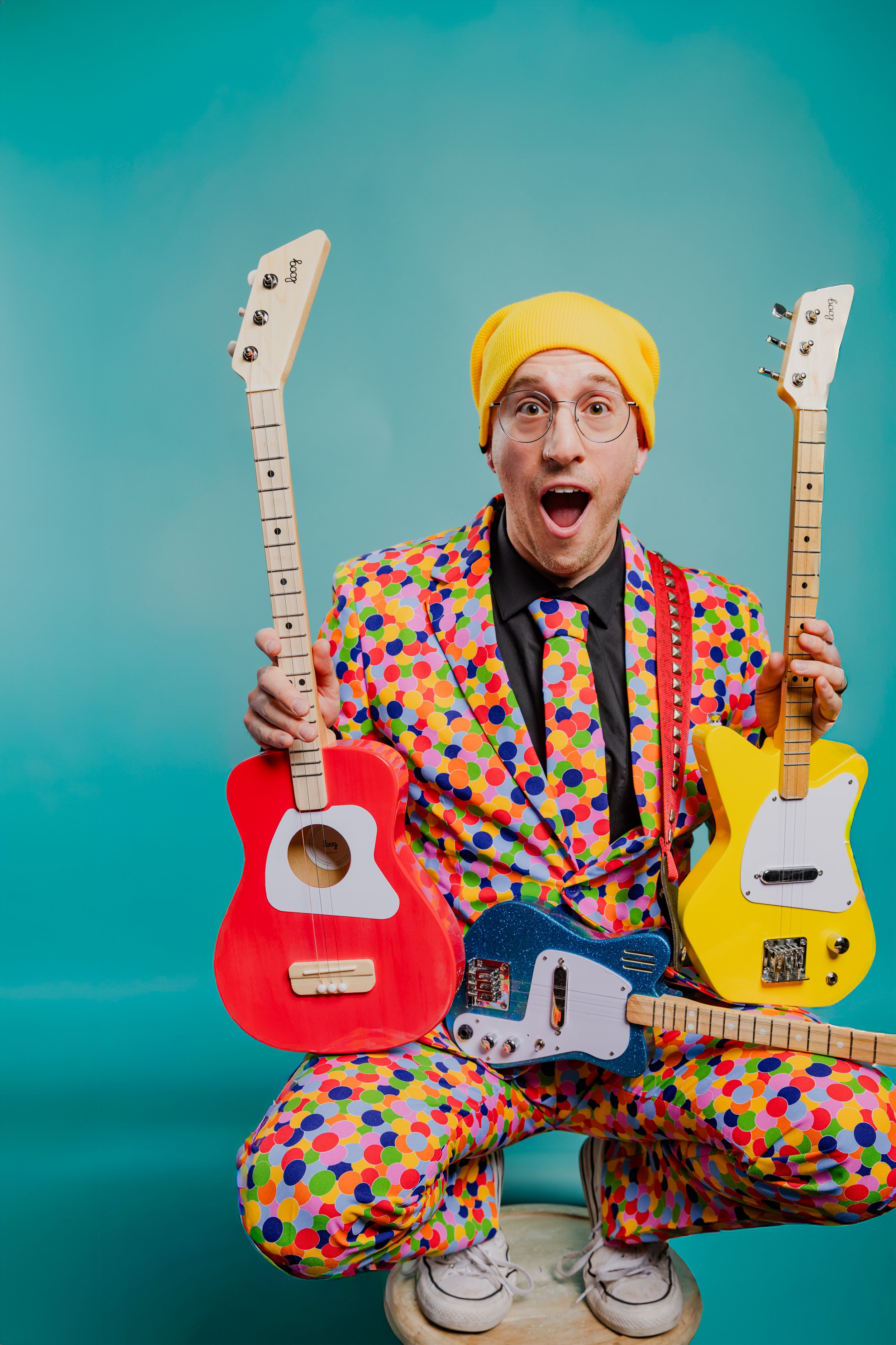 Meet Mr. Jeff, the super fun musician and teacher! Mr. Jeff wears many hats as a multi-instrumentalist musician, songwriter, music teacher, audio engineer, and former Pre-K and Preschool Teacher. With a Child Development Associate (CDA) Credential™ to his name, he spent four years inspiring young minds in his preschool classroom, where he seamlessly blended music, theatrics, and reading into his lessons.